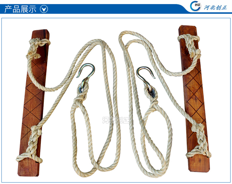 登高板又稱踏板,升降板。用來攀登電桿。登高板由踩板、繩索、鐵鉤組成。踩板用堅硬的木材制成,繩索為16mm多股白棕繩或尼龍繩,繩兩端系結在踏板兩頭的扎結槽內,繩頂部系結鐵掛鉤,繩的長度應與使用者的身材相適應。